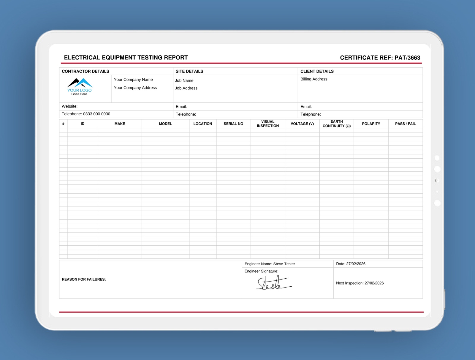 Engineers don’t need to have internet access to record all of the details – just complete the form on the app as normal and the final certificate can be generated once the engineer regains signal, or from the office.