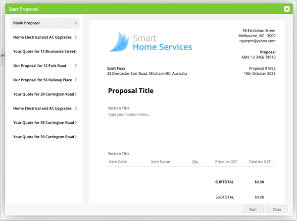 You can then save and send the proposal to yourself to review and test it, before preparing and sending it to an actual customer on a live job.