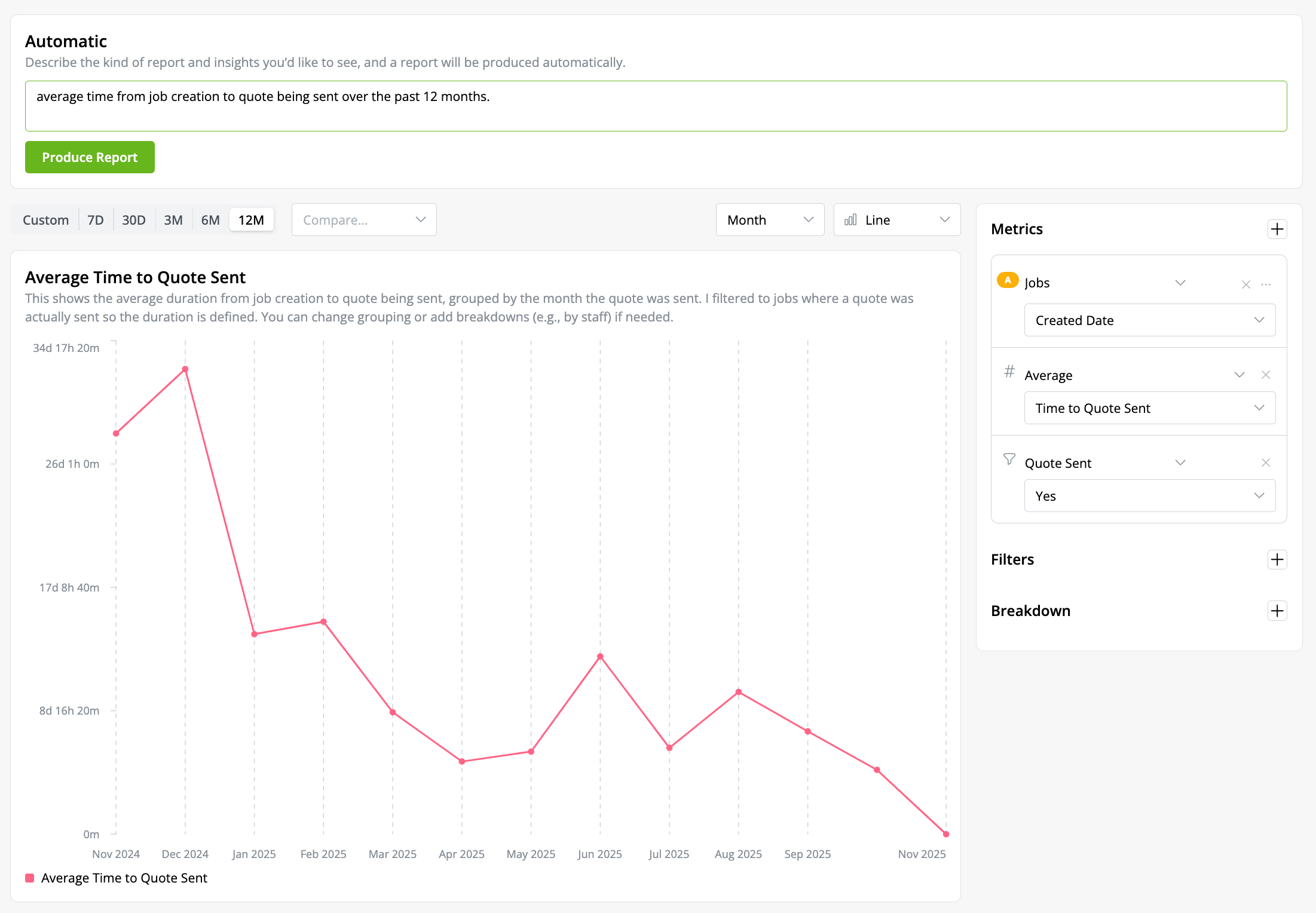 “Average time from job creation to quote being sent over the past 12 months”