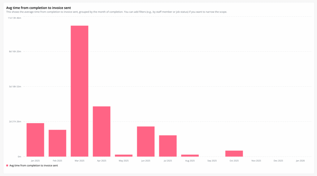 - Time from Completed to Invoice Sent (Cashflow discipline)