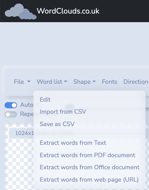 - Go to https://www.wordclouds.co.uk/