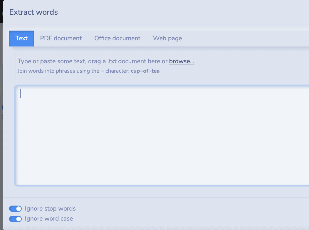 - Select word list > extract words from text