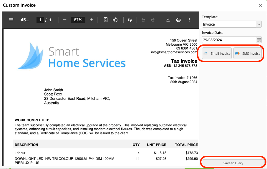 There’s nothing to set up here. It’s just an extra action available while you’re working on quotes and invoices. If you notice it and use it, your job diaries become far more useful over time.