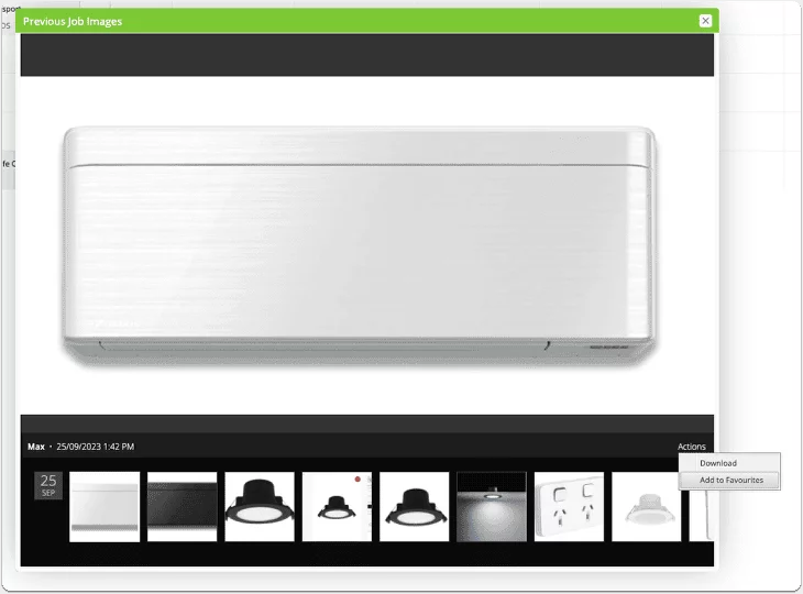 - Open the photo from the job’s Diary, and click Actions > Add to Favourites
